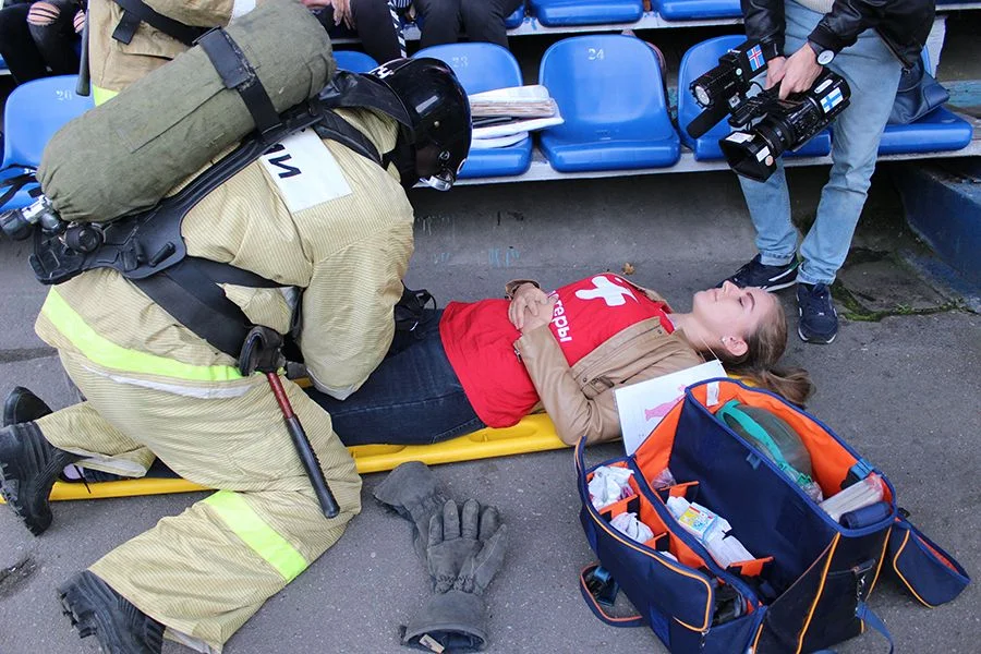 За ходом тренировки на стадионе «Балтика» во вторник, 26 сентября, наблюдала заместитель начальника Управления по работе с регионами Штаба Всероссийской службы медицины катастроф «Защита» Алла Белова.